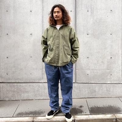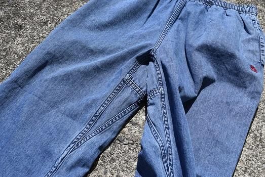 素材はオリジナルは化繊ですが、穿き心地の良いコットンイージーパンツを目指しライトオンスの柔らかいデニム地に。