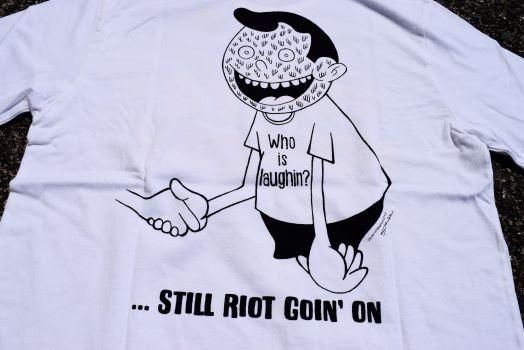 【GOOFY'S HOLIDAY】 今年1月にリリースされた6年ぶりの単独音源アルバム「... STILL RIOT GOIN` ON」のアルバムワークをSHOが行い、どうせ着るなら毎日着れる自分のブランドでと言う熱望で実現した贅沢なオフィシャル公認のバンドTee(バンTee)がリリース。CloveruとGOOFY'Sのコラボは2回目となる貴重なコレクションモデル。コレクションで発表している為、再販のないバンTeeフリークは勿論、Cloveru フリーク的にも歴史に残るレアな名作となっている。
