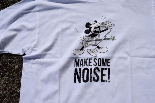今季のテーマ "MAKE SOME NOISE"に合わせ、ギターを弾きながらシャウトしている「ミッキー」のアートを落とし込んでいます。