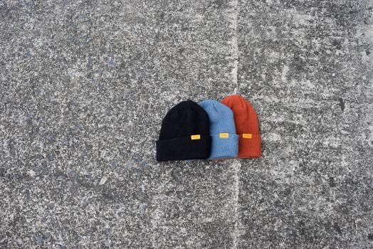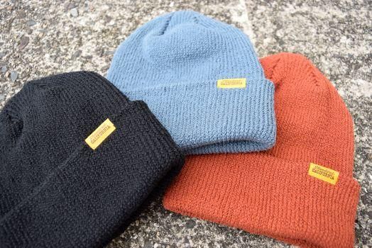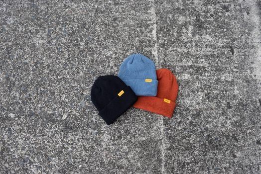 今シーズンのワッチキャップは定番のブラックに加え、色の抜けたカラーイメージのブルー、レッドの3色展開。
