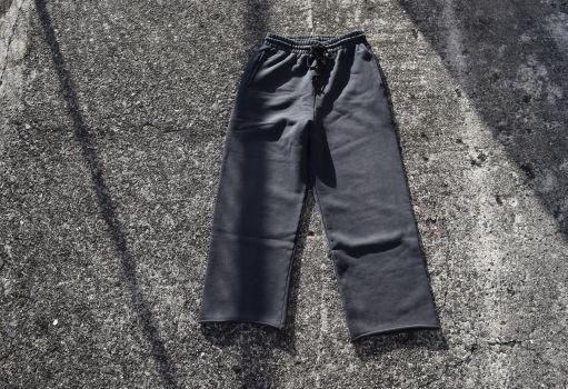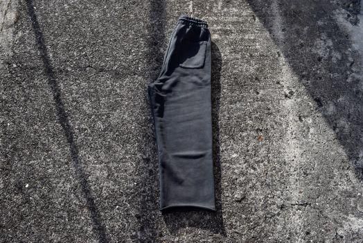 ストレートシルエットで、通常のスウェットパンツとは一線を回し独特のカタチと言えるでしょう。極端に深い股上がこのパンツ最大の特徴となります。