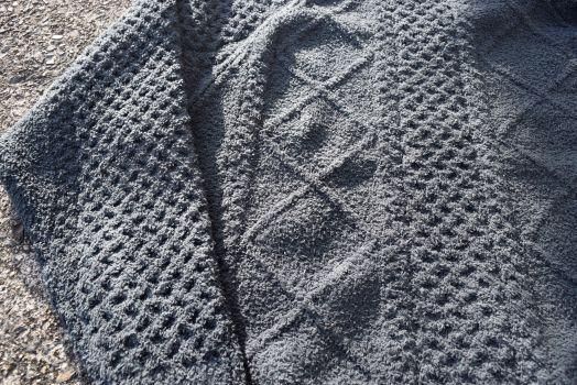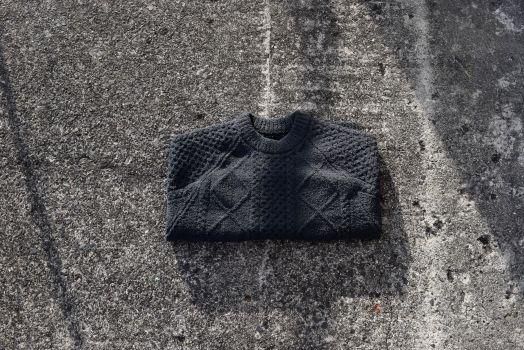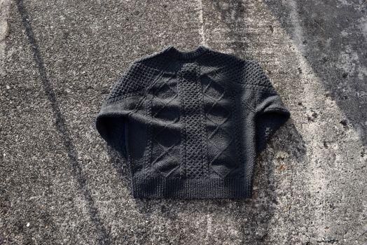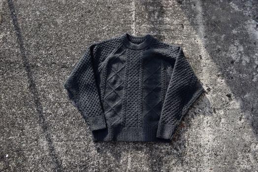•重くて硬いフィッシャーマンニットを軽くてソフトなシャギーヤーン糸でケーブル編みを表現したMAGIC NUMBER らしい1 着。