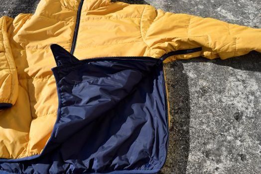 リバーシブルなので、ともに表生地の為、プリマロフト80gでも暑すぎず、快適です。